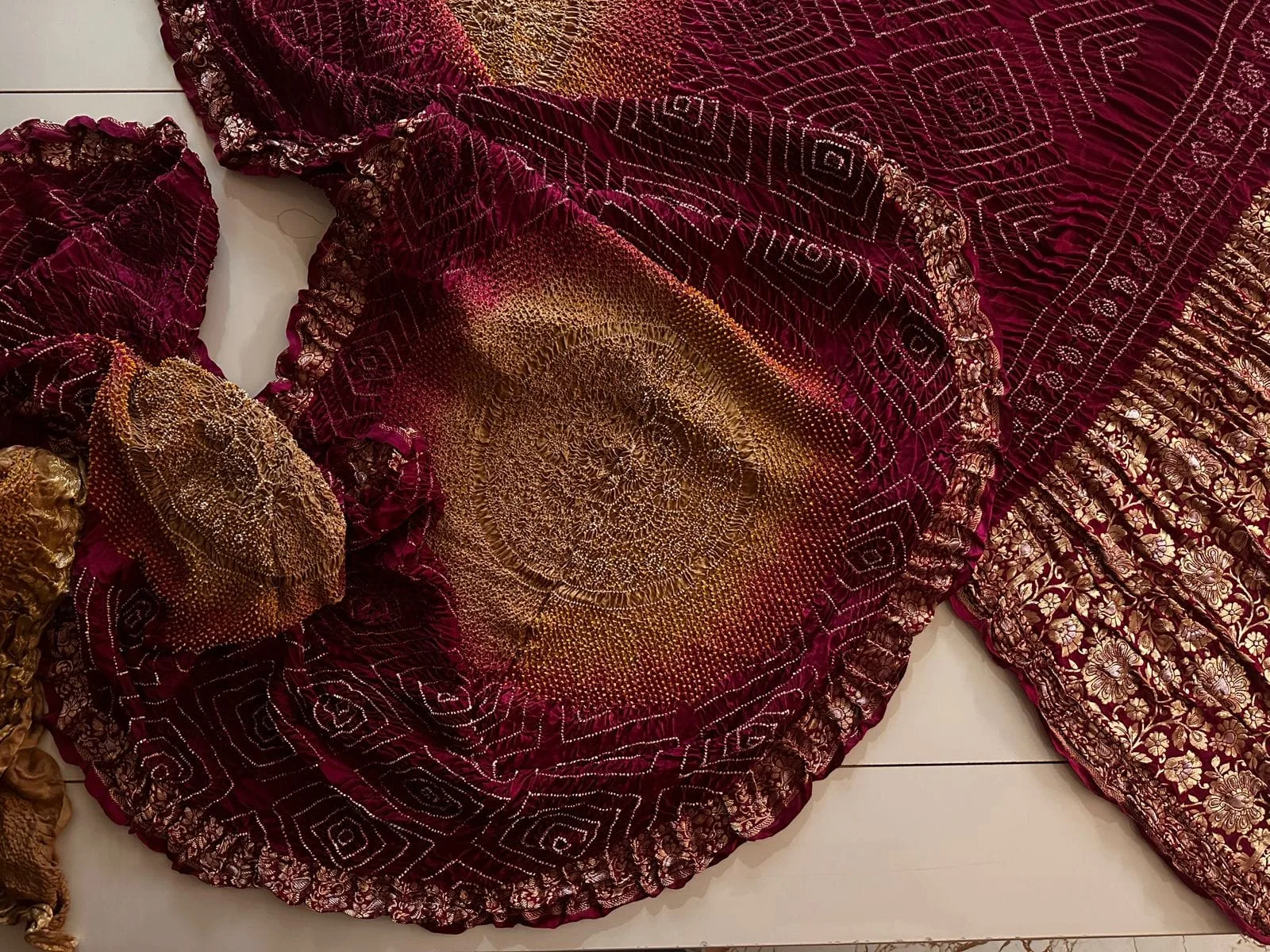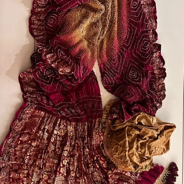 - Matching blouse: The included sleeve bandhej blouse is mentioned to complete the ensemble.