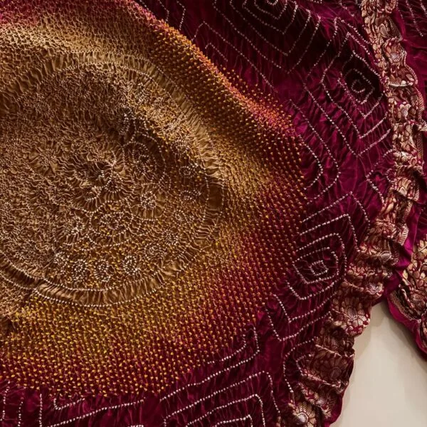 - Unique features: The saree’s premium quality, heavy bandhej work, and intricate zari weaving are emphasized.